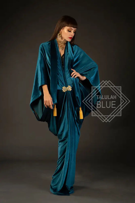 1920s Teal Velvet Great Gatsby Dress - Floor length flapper Cocoon coat